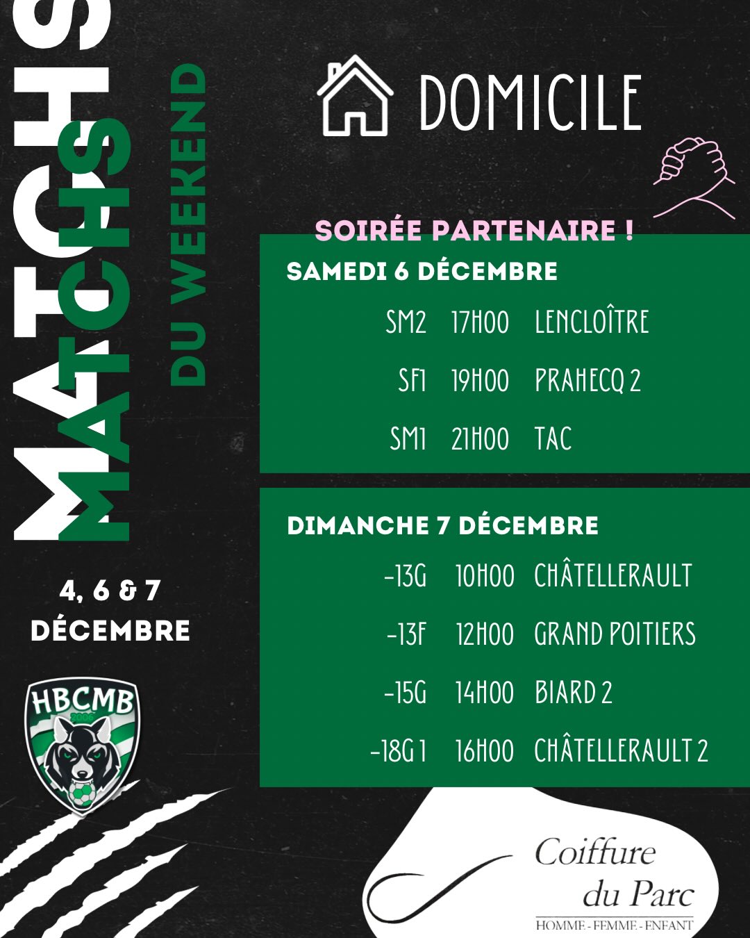 AFFICHE DU WEEKEND – 6 DEC 25 AFFICHE DU WEEK-END! Ce week-end s’annonce intense pour le HBCMB ! En plus d’enchaîner trois …