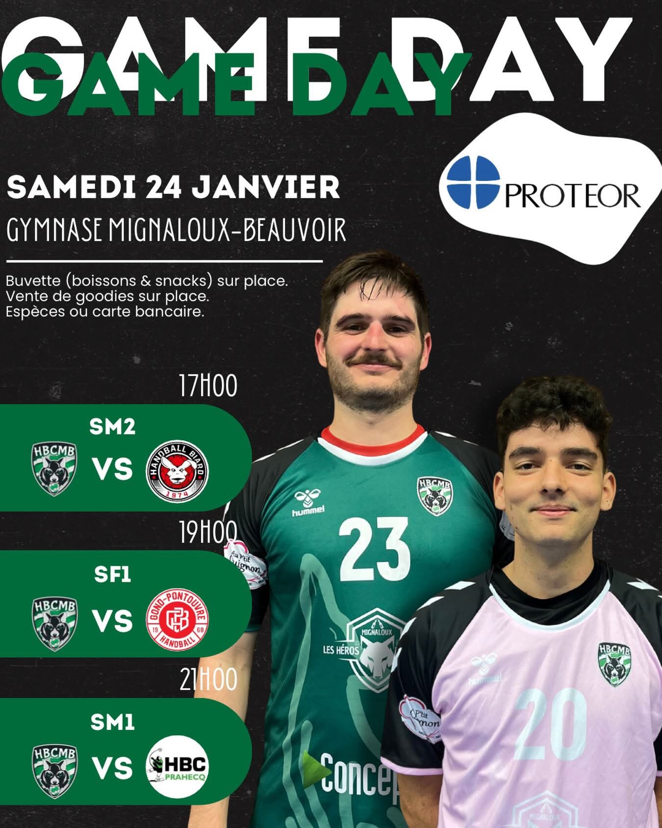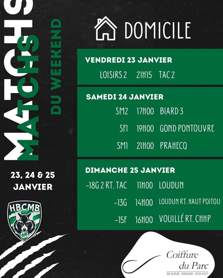 AFFICHE DU WEEKEND – 24 JANV 26 AFFICHE DU WEEK-END!On vous attend très nombreux pour encourager vos équipes, à partir de 17h pour nos SM2 qui affronteront Biard 3, puis