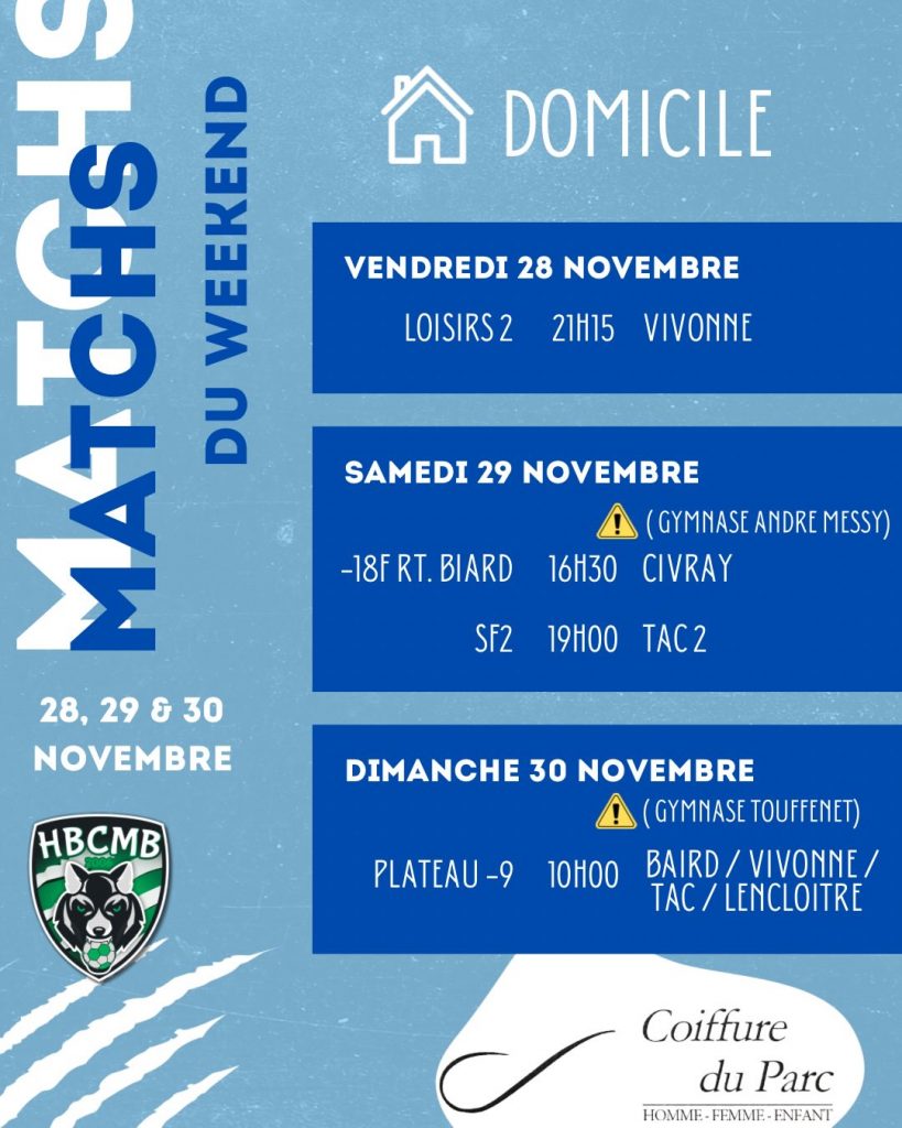 MATCHS DU WEEKEND – 28/29/30 NOV Matchs du week-end!Venez nombreux ...