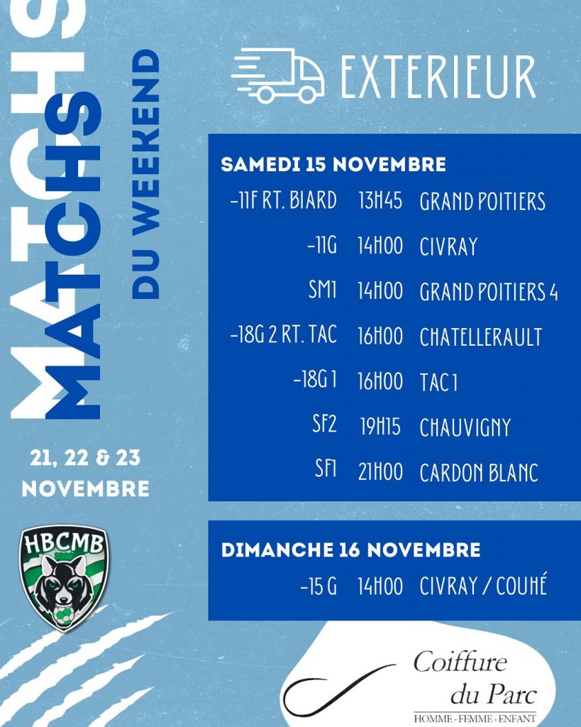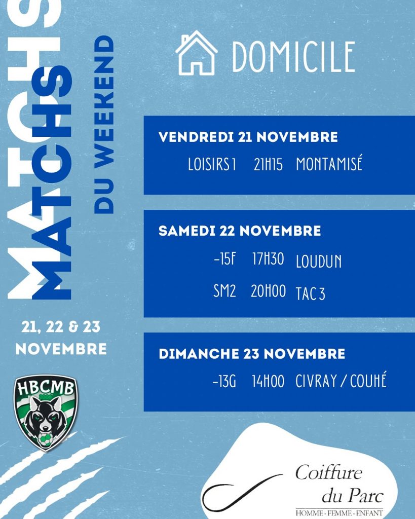 MATCHS DU WEEKEND – 21/22/23 NOV 25Actualités / Par President_HBCMB MATCHS DU WEEKEND - 21/22/23 NOV 25 Matchs du week-end!Venez nombreux encourager vos équipes !