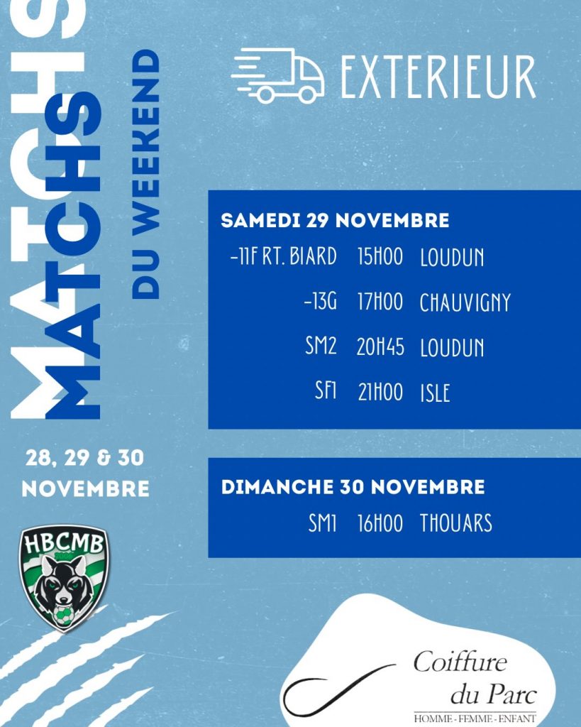 MATCHS DU WEEKEND – 28/29/30 NOVActualités / Par President_HBCMB MATCHS DU WEEKEND - 28/29/30 NOV Matchs du week-end!Venez nombreux encourager vos équipes !Les matchs de ce week-end auront lieu au gymnase André Messy pour le samedi et à Touffenet pour le plateau des -9 dimanche