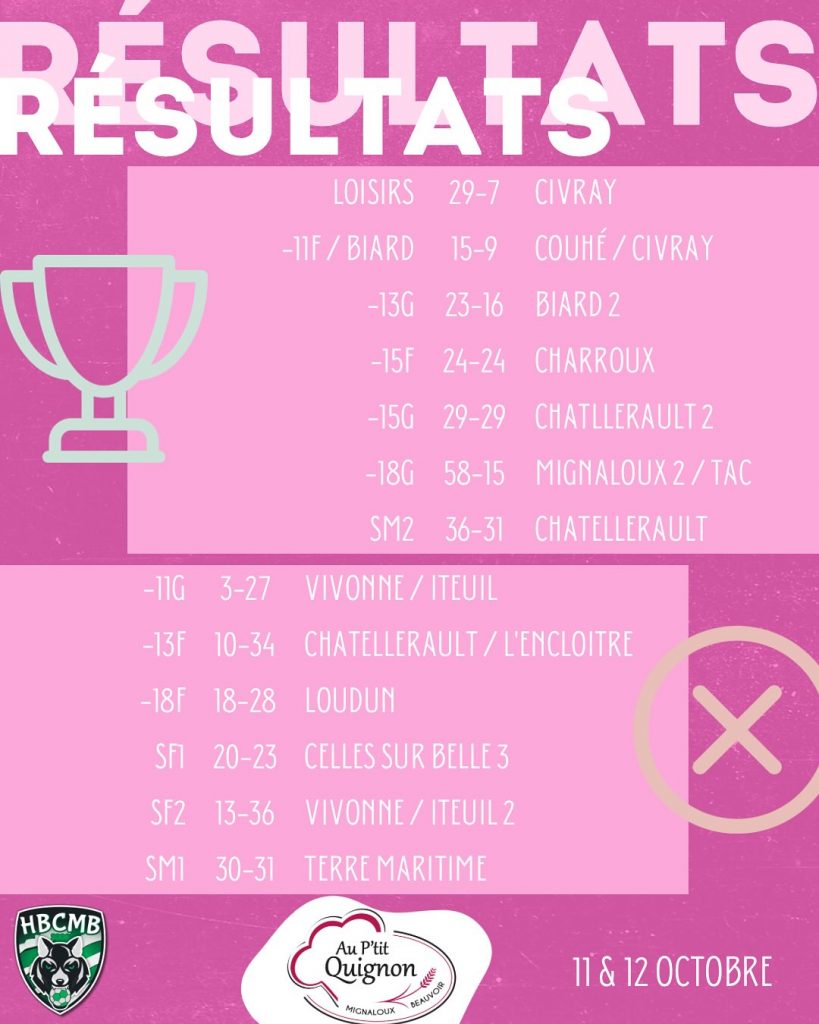 RÉSULTATS DU WEEKEND - 11/12 OCT 25