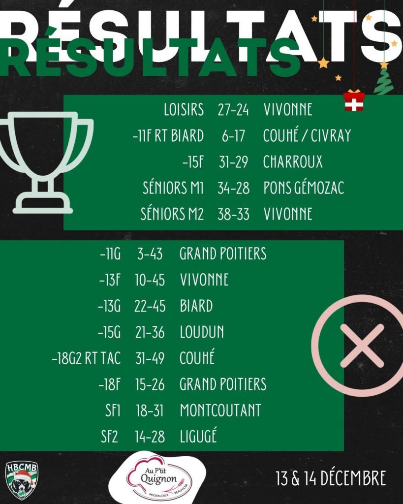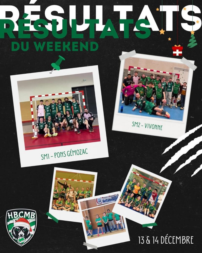 RÉSULTATS DU WEEKEND – 13/14 DECActualités / Par President_HBCMB RÉSULTATS DU WEEKEND - 13/14 DEC Les résultats du week-end !Bravo à nos équipes pour leurs derniers matchs de championnat avant la trêve de Noël !On se retrouve le week-end prochain pour la coupe