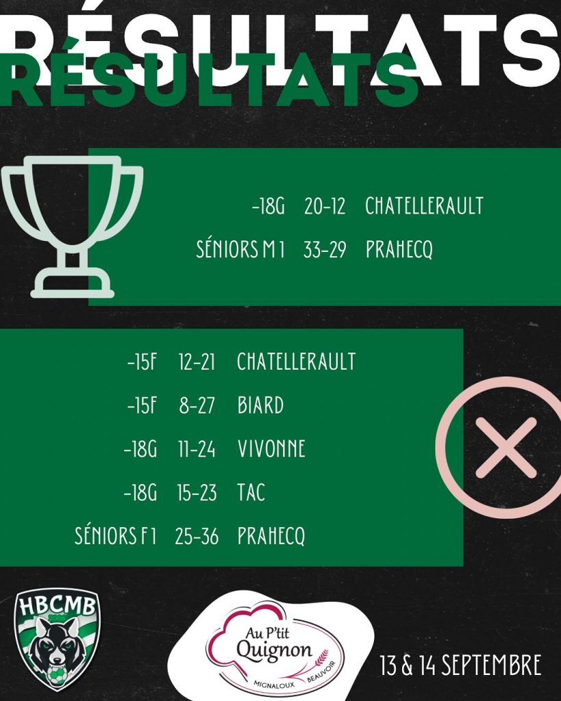 RESULTATS DU WEEKEND – 13/14 SEPT 25Actualités / Par President_HBCMB RESULTATS DU WEEKEND - 13/14 SEPT 25Reprise de championnat pour nos équipes séniors et TQ pour nos jeunes !Un grand bravo à tous ! On se retrouve le week-end prochaine
