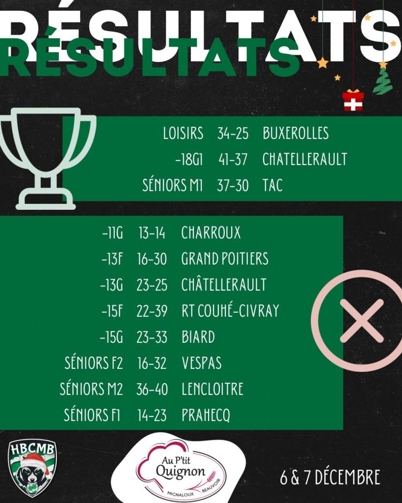 RÉSULTATS DU WEEKEND - 6/7 DEC